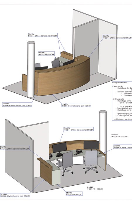 Nos techniciens et dessinateurs, tous issus d’écoles d’agencement, sont hautement qualifiés et possèdent une vaste expérience professionnelle. Ils se chargent en interne de la réalisation des études et des plans d’exécution, tout en prenant en considération les contraintes budgétaires, calendaires et techniques inhérentes à chaque projet.